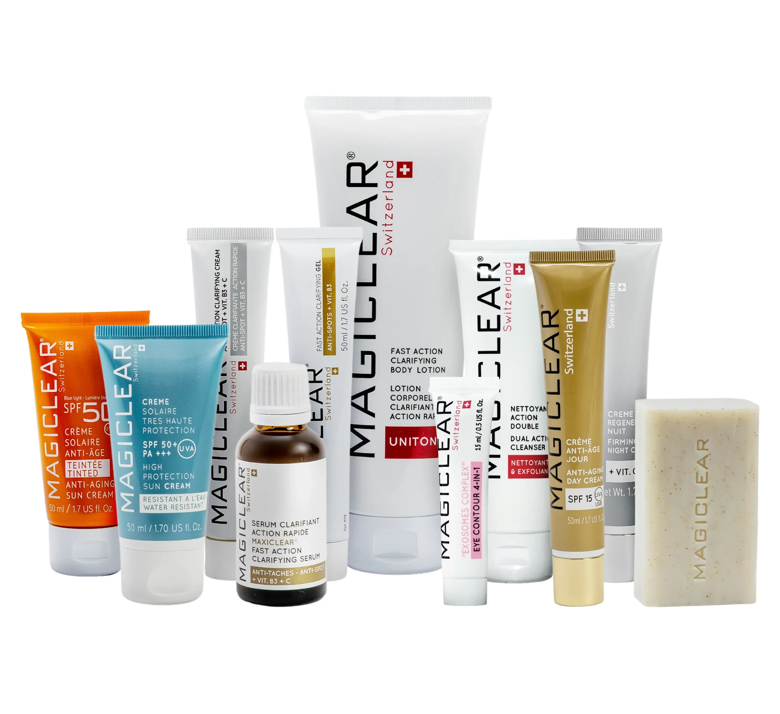 Bienvenue chez MAGICLEAR – Votre destination pour des solutions de soins de la peau suisses avancées. Nos produits sont conçus pour répondre à tous vos besoins en matière de soins de la peau, de la clarification et du blanchiment à l’hydratation et à l’anti-âge. En utilisant des ingrédients de soin naturels et propres comme la vitamine C, l’extrait de racine de réglisse et l’extrait de pois, nous proposons des traitements efficaces contre les taches brunes et l’hyperpigmentation.